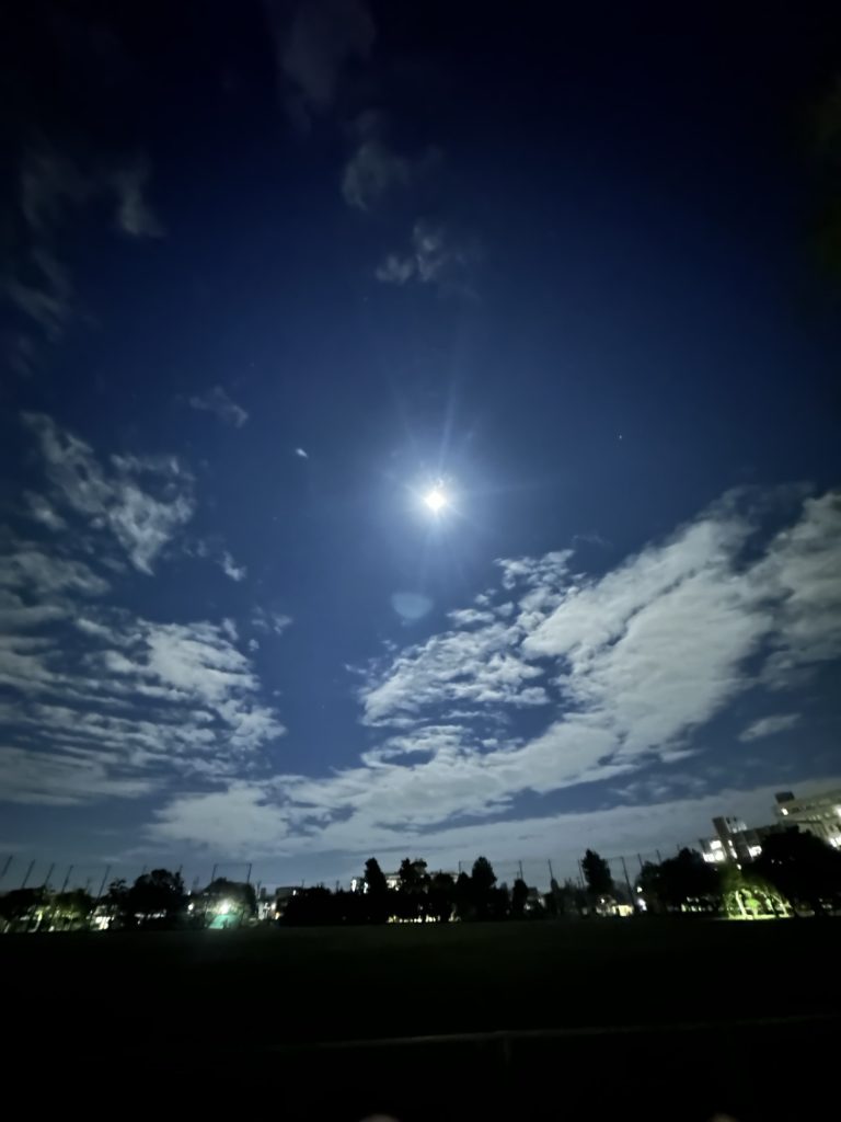 ウォーキング中、夜空を見たら凄く綺麗な満月でした。